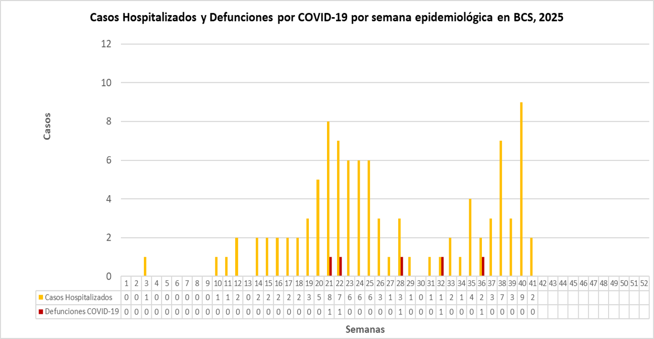 Casos Hospitalizados y Defunciones por COVID-19 en B.C.S. 2025.
