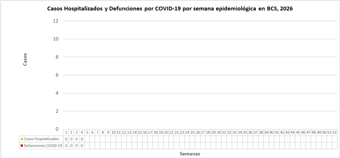 Casos Hospitalizados y Defunciones por COVID-19 en B.C.S. 2025.